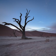 Am späten Nachmittag und insbesondere in der Stunde vor Sonnenuntergang sollte sich fast niemand mehr hier mit Euch befinden. Ihr könnt die Sossusvlei und das Dead Vlei fast allein auf Euch wirken lassen und das Lichtspektakel mit den unterschiedlichsten Rottönen und Kontrasten zwischen rotem Sand und den abgestorbenen Kameldornbäumen geniessen.