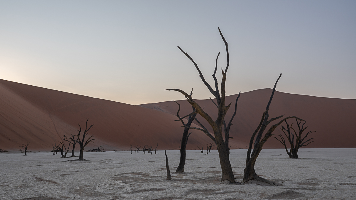 Jetzt habt Ihr noch ca. eine halbe Stunde Zeit das Dead Vlei fast für Euch allein zu geniessen und das Farb- und Lichtschauspiel der Schatten zu beobachten, dann werden die ersten weiteren Menschen von der Dune 45 ankommen, denen kurze Zeit später die Massen folgen.
