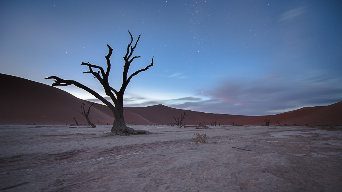 Auch wer Aufnahmen von der Milchstraße im Sesriem Canyon machen möchte ist in der keine 2 km entfernten Sossus Dune Lodge richtig, natürlich auch für Aufnahmen Milchstraßenaufnahmen im Dead Vlei. Auch ich habe meine Kamera hier zum Sonnenuntergang ausgesetzt und zum Sonnenaufgang eingesammelt, denn ich war sicher die letzte und die erste Person im Dead Vlei.